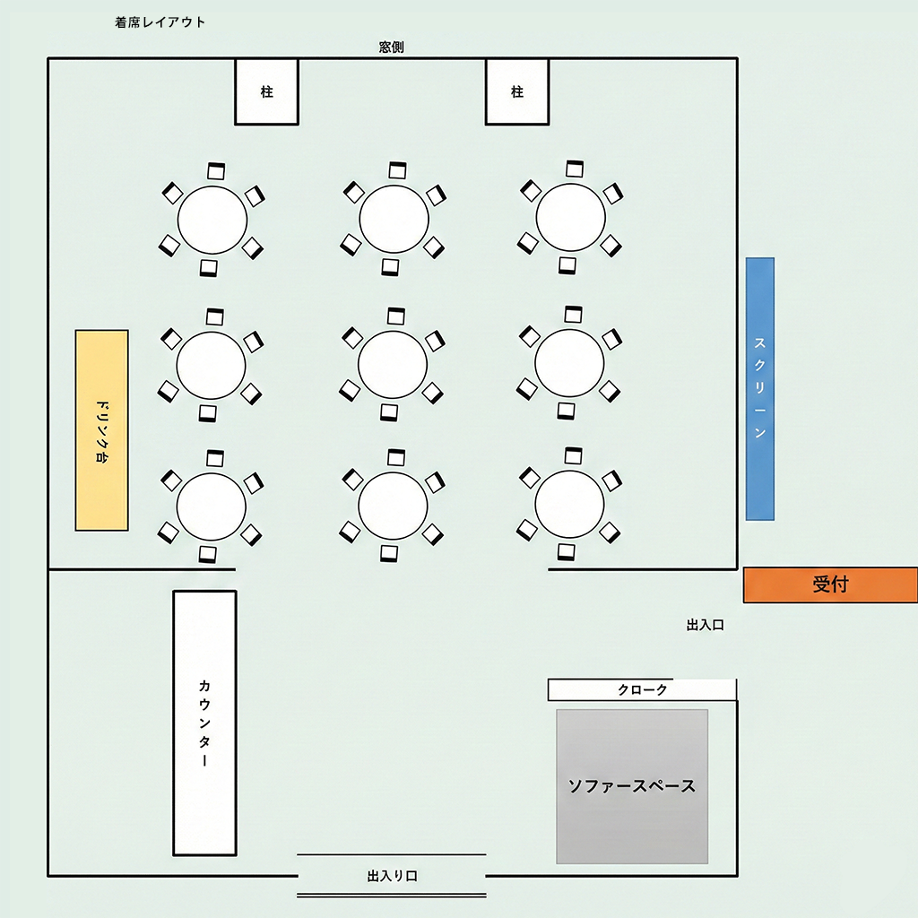 会場の広さ、ご利用人数などご一緒にお教えいただけるとご案内がスムーズです。